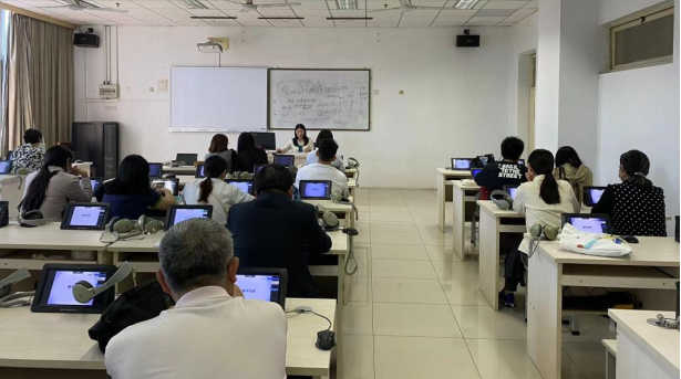为推进信息技术与教育教学的深度融合,共同探讨智慧课堂环境下的教学改革,以提高大学英语教学质量和学生学习体验,10月16日下午,外国语学院大学英语第一教研室在文达楼307语言实验室举行了基层教学组织集体教研活动。本次活动由教研室主任王晓红主持,全体教师参与,围绕“数字赋能大学英语教学改革”主题,进行了深入的教学研究与讨论。校本科教学督导组专家李健教授全程参与了教研活动并做现场指导。
