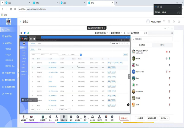此次培训活动由外国语学院副院长严红花主持,英语、日语、朝鲜语、俄语专业的翻译实训课程任课教师全体参加。培训中,翻译实训平台负责人通过远程线上讲解的方式,详细介绍并带领教师实际操作了教学平台、实训平台、多语资产平台的各项功能,并针对实训平台中的快速机翻、个人实训、团队实训等模块进行了模拟演示。