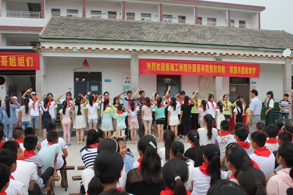 2016年7月11日上午,淮海工学院外国语学院2016年暑期社会实践团队抵达灌云县杨庄前河小学。伴随着热烈的掌声,实践团队正式开启前河小学支教之行。参与此次支教活动的有学院党委副书记何颖老师,分团委书记魏学庆老师,王熙老师,赵冉老师以及13、14、15级一些热心公益的同学。