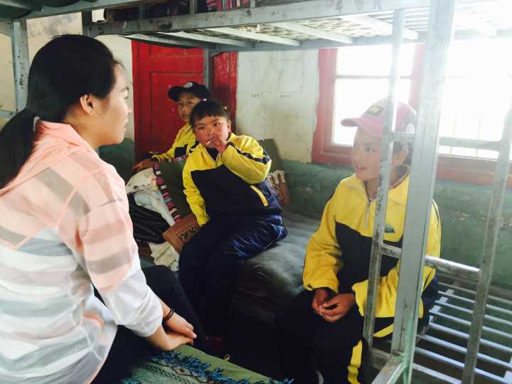 队员们非常期待今天的迎新工作,吃完早饭就赶紧跑到校门口领学生进教室,并且布置一些相关事宜,九点左右,有学生陆陆续续走进学校,他们看到阔别已久的学校和教室,脸上流露出纯真的笑容。由于很多学生家和学校相距较远,所以他们选择住校。破了洞的被子,透风的窗户一切看到都是那样的心酸。但是这样的宿舍却成为了他们最温暖的家。队员们下楼后,很开心的和学生交流,并且热情的帮助孩子铺被子,然而,这群看起来不大但是懂事的孩子拒绝了队员的帮助,她说:“谢谢老师,我自己来就可以了,自己的事情需要自己做。”说完便拎起十几斤重的被子向校园走去。这些孩子带给了队员欣慰和感动的同时也让队员们心头一酸,开始怜悯起他们来。