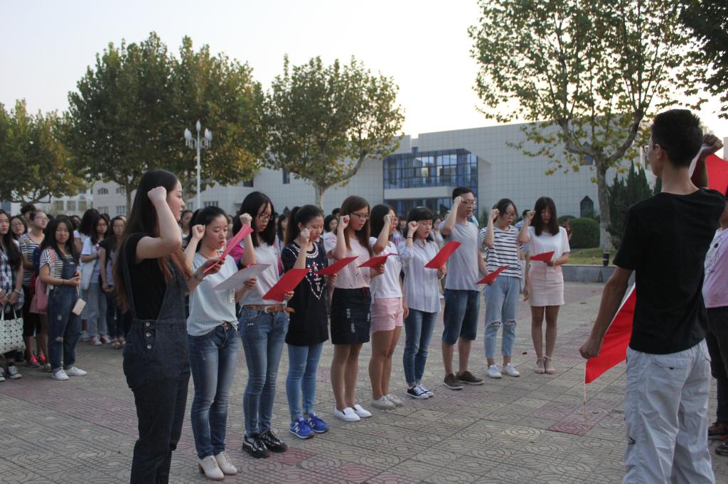 升旗仪式结束后,外国语学院学生党支部举行学生党员“亮身份,树形象”活动。学生党员在全体师生的注视下,面向党旗,庄严宣誓,他们将在今后的学习生活中时刻牢记自己的党员身份,严于律己,甘于奉献,以实际行动践行党员的义务和责任。