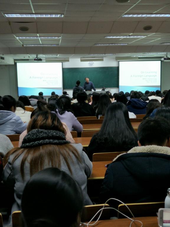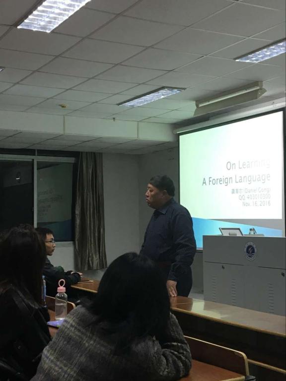 为帮助同学们更快适应大学外语学习节奏,解决语言学习中所遇困难,进一步强化外语学习能力。11月16日19时,外国语学院“外语学习”讲座在我校通灌校区至善楼302室顺利举行。此次讲座的主讲嘉宾为教导处督导龚育尔,此外,外国语学院党委书记何颖,辅导员王熙也出席了此次活动。