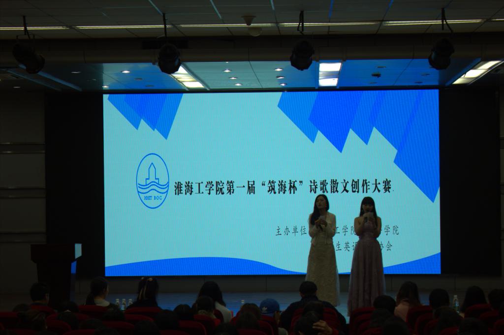 4月7日晚19时,由外院学生会和大学生英语沙龙协会主办的第一届“筑海杯”诗歌朗诵比赛决赛于艺术楼报告厅内隆重开赛。外国语学院党委副书记何颖老师,外国语学院李二维老师,赵冉老师,连云港实验学校赵春景老师担任本次比赛的评委老师。经过一番激烈的角逐,文学院徐静雯同学朗诵的《云海谣》以95.75的高分获得本次大赛的第一名。