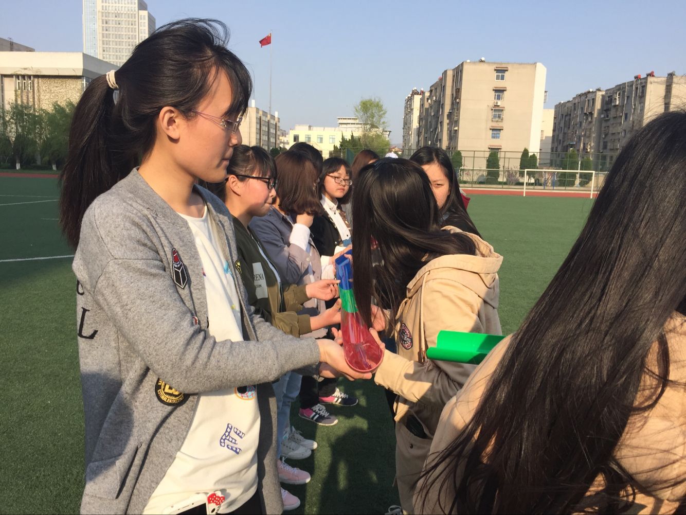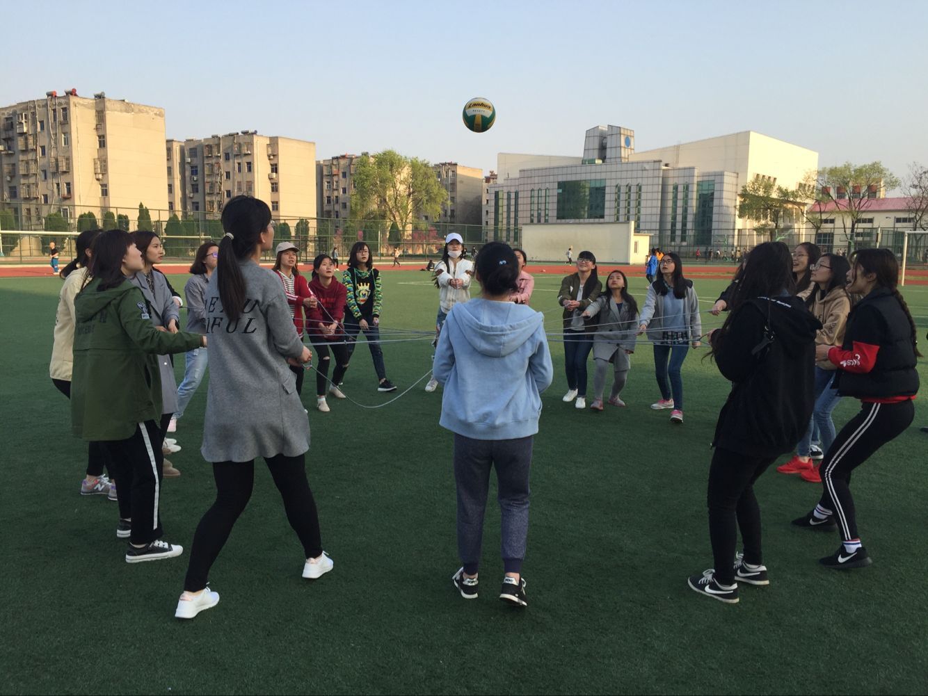 2017年4月12日下午4时,淮海工学院外国语学院在通灌校区操场上开展了525心理活动月第一场素质拓展活动。活动对象为淮海工学院全体大一学生。参与活动的人员还有外国语学院书记,辅导员以及各班班主任。此次活动的目的是为了引导同学们关爱自身、关爱同学,形成温馨宿舍、友爱班级的和谐氛围,促进同学之间的交流,增强班级凝聚力。