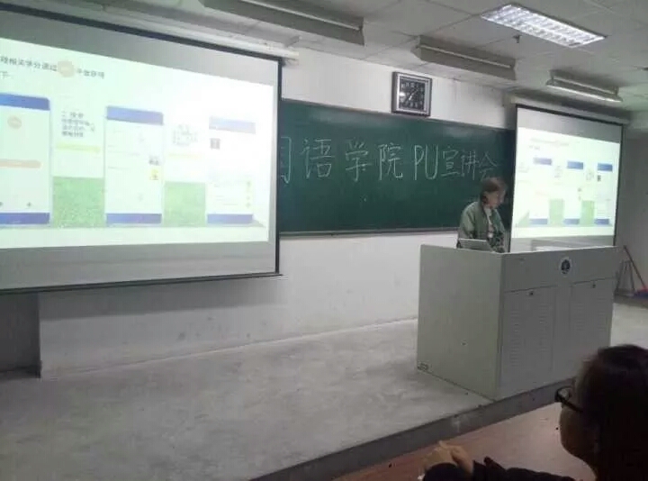 2017年10月10号19:00整,大学生成长成才服务中心在通灌校区至善楼302进行全体新生PU宣讲会。大会由副主任赵倩主持。