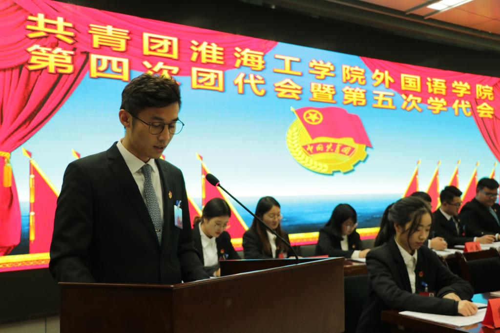 大会听取了魏学庆所作的《学习贯彻“十九大”精神传承弘扬“淮工人”梦想——团结引领团员青年在大学建设中发挥生力军作用》团委工作报告,外国语学院学生会主席陶逸做学生会工作报告。