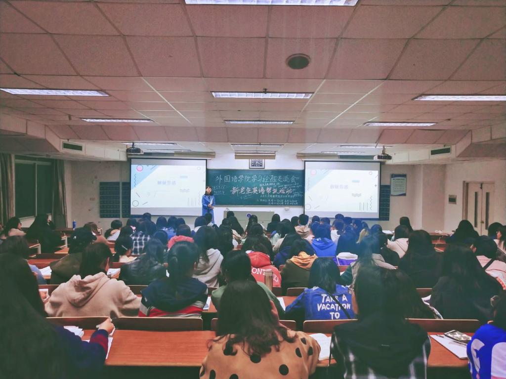 10月21日晚7时,外国语学院学习经验交流会之新老生英语帮扶活动在至善楼302教室顺利举行。出席此次活动的为外国语学院团委书记魏学庆老师,本次交流会很荣幸地邀请到英语161班的秦子然和英语164班的胥越两位优秀学生代表为英语系大一新生分享他们的学习经验。
