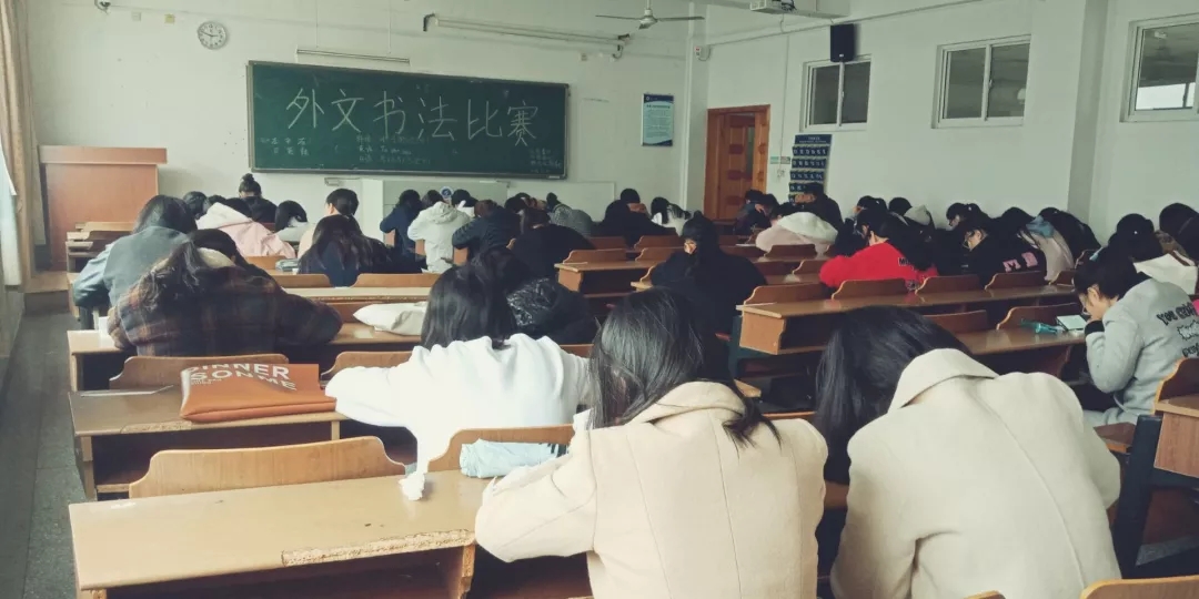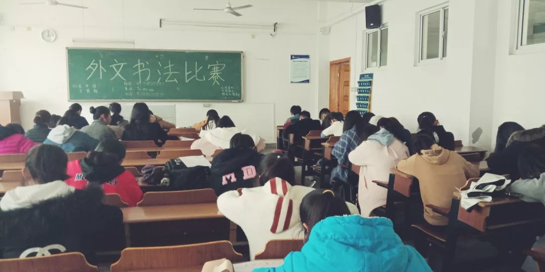 11月11号下午两点半,在苍梧校区文通楼301顺利举行了外文书法大赛的决赛。本次活动由淮海工学院外国语学院青年志愿者协会、淮海工学院外国语学院科技协会、樱花社和韩屋村共同举行。