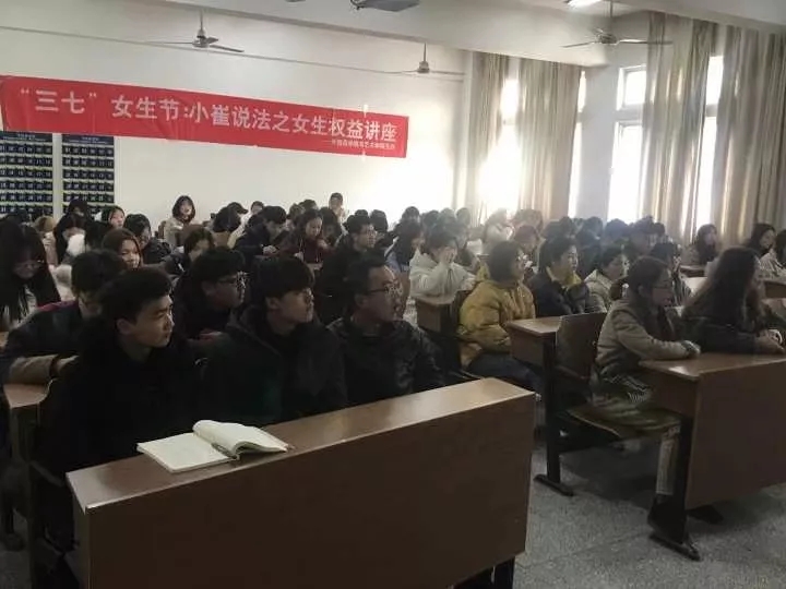 为了更好的维护女生的权益,预防女生在学习和生活中可能遇到的侵权行为,3月7日下午,在文通楼303,外国语学院联合艺术学院,邀请法律与公共管理学院崔家新老师,开展了“小崔说法之女生权益讲座”。