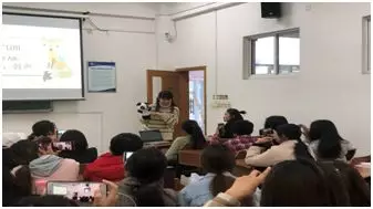 本次课堂的授课老师是Bella老师,Bella老师首先检测了同学们上堂课所学,然后就正式进入了教学。以一个单词和两个句型为例,在讲课时首先要从greeting与将小朋友分组编号开始,然后综合运用task and check,pair work,group work等等,另外还要针对不同层次的小朋友运用不同的方法。在教学过程中,Bella老师告诉我们要适当运用玩偶或小卡片来提高小朋友们的学习兴趣,在播放视频时要中途有选择的暂停以此来检测小朋友们的注意力是否集中。由于内容较多老师给了同学们30分钟的准备时间,在积极的准备过后,同学们在考核时都将过程呈现的较为完整,仍有一组同学因时间有限只能将考核内容作为课后作业完成。考核结束后,老师针对同学们出现的问题进行了点评并告诉同学们如何修改。