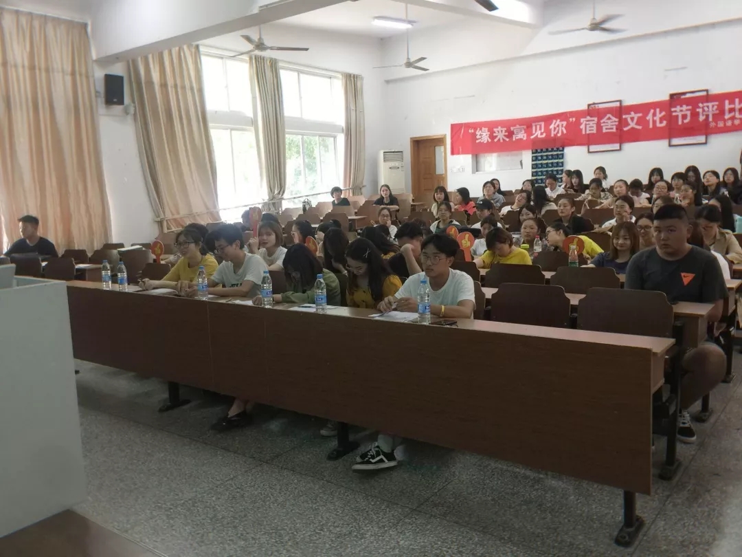 5月25日中午1:00,由外国语学院学生会权益部举办的“因为寓见你”宿舍评比大赛决赛在苍梧校区文通楼A104顺利举行。出席本次座谈会的有外国语学院学生会副主席李震天,文学院权益部部长张婧莹,商学院权益部副部长冯莹,法管院权益部副部长樊昌盛以及外国语学院学生会权益部所有成员和20名来自不同班级的大众评审。