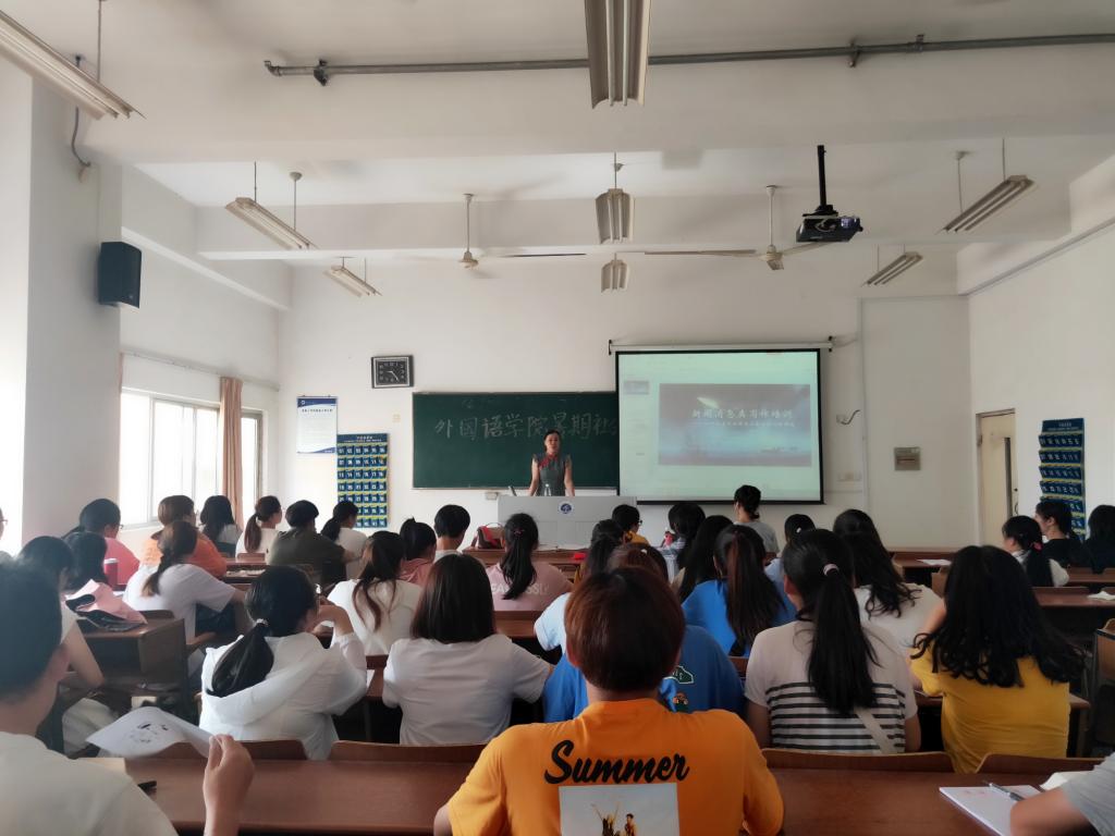 7月2日上午,江苏海洋大学外国语学院在通灌校区开展了“青春心向党 建功新时代”暑期社会实践新闻稿培训会。校党委宣传部胡耀华老师为外国语学院社会实践团做了精彩的讲座。围绕“青春心向党 建功新时代”这一主题,展示了青年人朝气蓬勃的活力,呼吁青年新闻人自觉肩负起新闻舆论工作的使命。