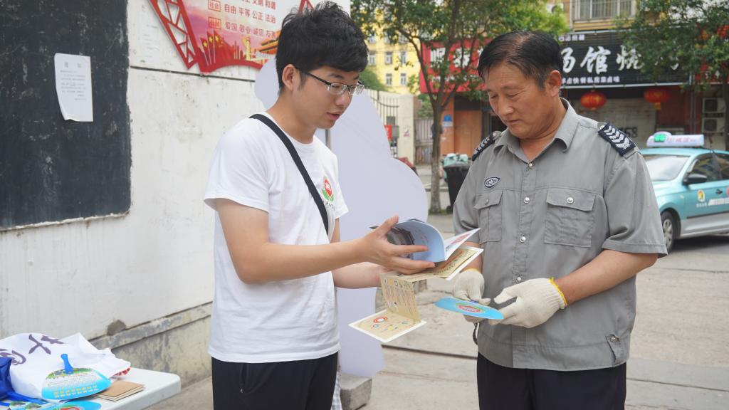 本报讯7月16日 江苏海洋大学外国语学院“港城绿色种子”暑期社会实践团队来到新中社区和财苑社区,为宣传绿色环保理念,增强市民的环保意识,共同创建全国文明城市贡献自己的力量。