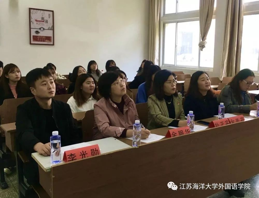 本报讯 2019年10月18日星期五下午四时江苏海洋大学韩国语演讲比赛暨歌曲比赛在苍梧校区文通楼114顺利举行并圆满落幕。朴正实、姜淼、金明华、李光勋、全美花老师出席比赛并担任评委。比赛由朝鲜语部部长王彭和陈康主持。