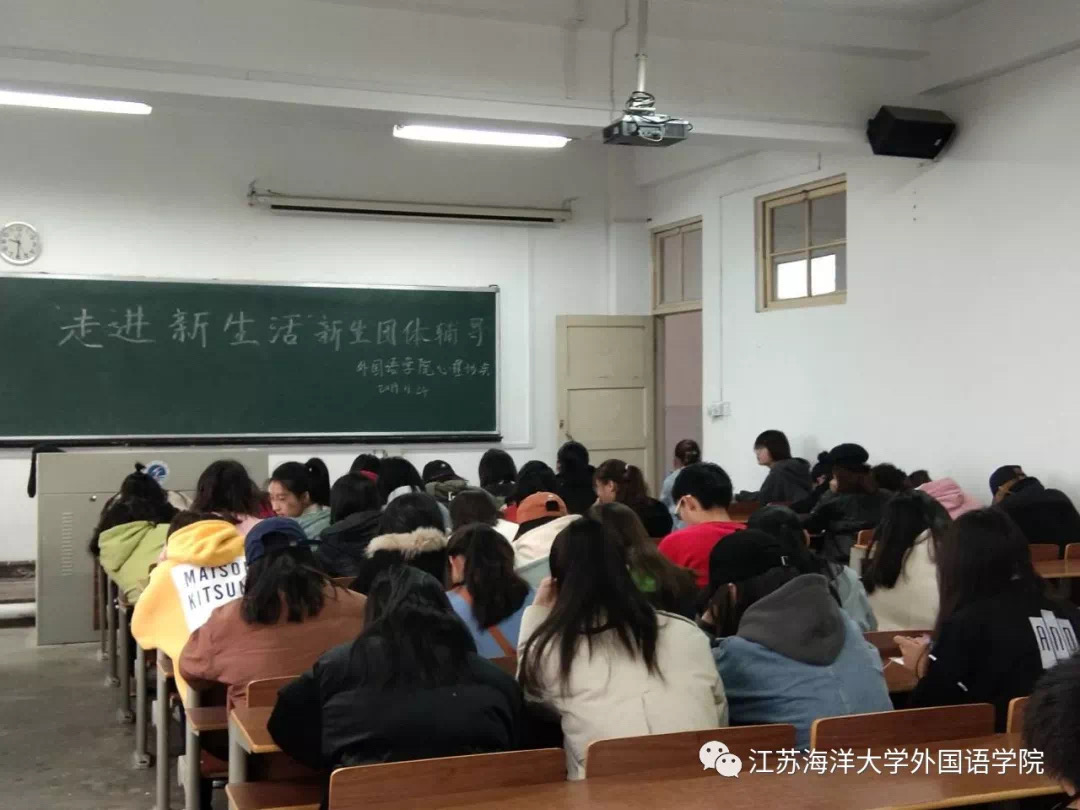 11月24日,江苏海洋大学外国语学院分别在通灌校区明德楼301、305、315开展了主题为“走进新生活”的心理团体辅导活动。