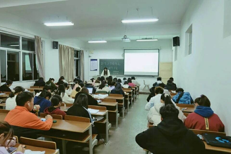 为了督促学生对《学生手册》的学习,外国语学院学生会学生部于11月8日晚自习在通灌校区外国语学院各个班级组织了《学生手册》学习会,此次会议由学习部副部吴沫涵主持。