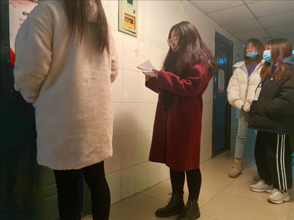 首先学生事务保障中心部长董涵与舍管阿姨说明来意并发放工作证,参加此次检查夜不归宿活动的人员有外国语学院学生会学生事务保障中心部长董涵、副部陆子璠,外国语学院19级各班生活委员。紧接着,在舍管阿姨的带领下,所有工作人员有序通过门禁进入A6宿舍楼,按照名单依次检查各宿舍人员是否齐全。活动过程中,工作人员井然有序,文明有礼,到达宿舍门口后轻敲宿舍门并表明来意,随后安静地等待开门,同学们也积极配合工作。最后,由外国语学院朝鲜语191班生活委员戴丹丹整理晚归人员名单,工作人员上交工作证。至此,外国语学院学生会学生事务保障中心检查夜不归宿活动顺利结束。
