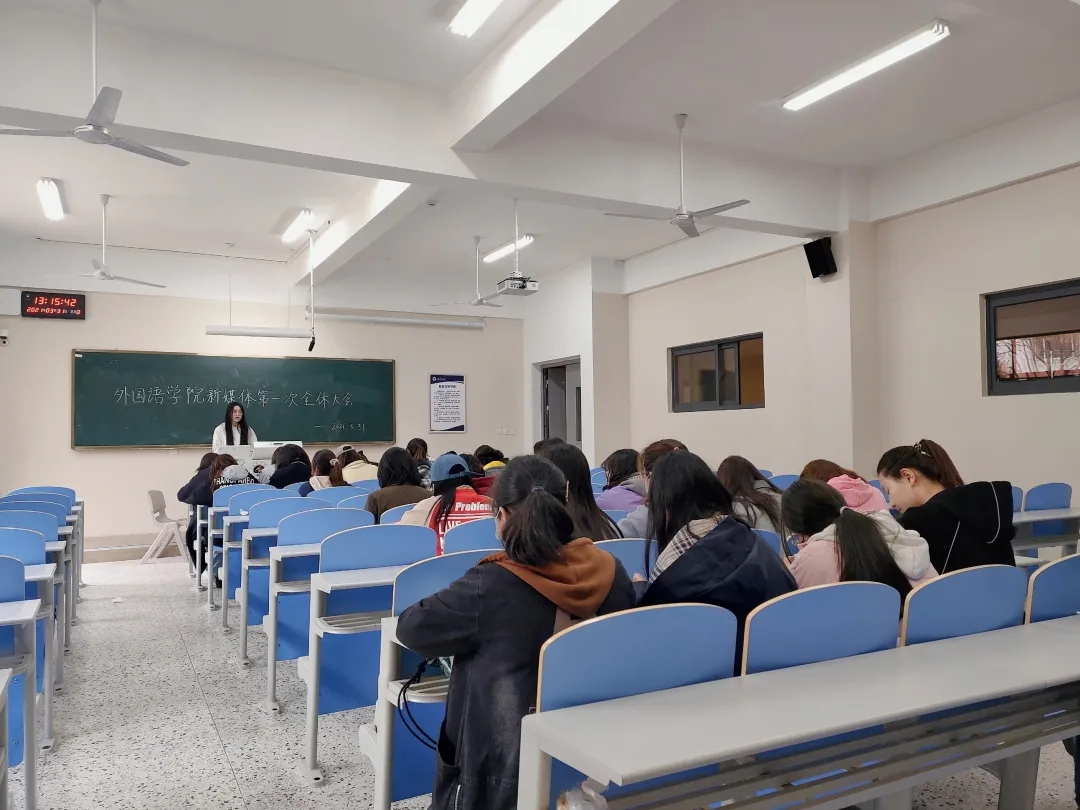 3月30日下午1时,外国语学院新媒体发展中心第一次全体大会在苍梧校区文思楼105顺利召开。本次会议由外国语学院新媒体发展中心主任郁晓婷主持,副主任李心怡、汪欣怡、各部门部长、副部以及干事参加。