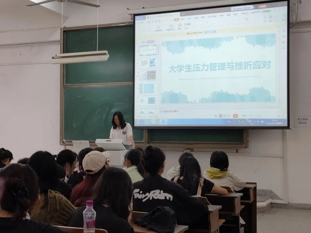 接着,她详细介绍了压力与挫折之间的关系。其中她提到,压力的存在有其必然性,但压力具有双重性,压力给生活带来乐趣和促进人类发展,并提醒同学们要正确看待挫折。随后,她给出一系列缓解当前毕业生压力的方法,例如:可以从对音乐的兴趣去找到精神力量;可以稍加运动让自己的身体放松,缓解压力;用勇气去改变坏习惯,理性消费,减少额外负担,建立合理信念等,希望同学们能从中受益,积极面对即将到来的毕业生活。