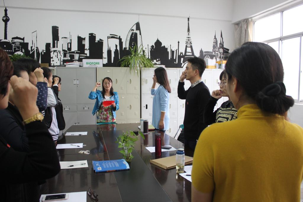 9月28日下午,外国语学院大学英语第一教研室党支部全体党员在文渊楼264室召开“学习习近平总书记系列讲话,强化‘四个意识’”专题讨论会,并且进行了“戴党徽、亮身份、树形象”宣誓仪式。