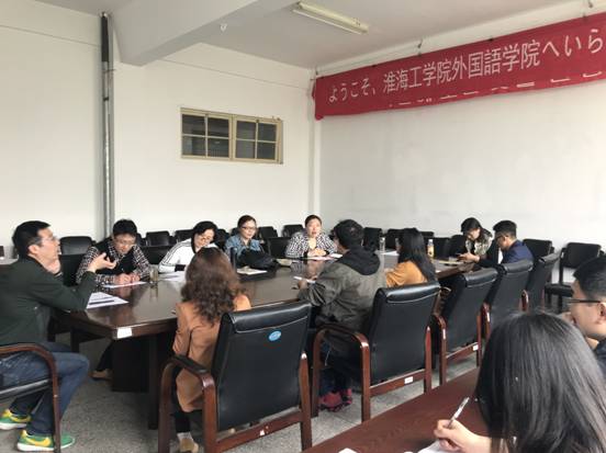 首先,赵宏对2017年度民主评议党员和党支部考核工作进行了总结,对各党支部工作中存在的问题进行了反馈,并提出了整改方向和改进方法。再次,对教工发展党员工作提出了要求,注重挖掘优秀人才,做到早宣讲、早培养、早吸收。党支部的工作要懂得融入,把好方向、解决难题、树立榜样。随后,何颖带领大家学习了江苏大学“立足课堂教学,创新育人平台”和中国药科大学“凝心聚力,科研团队建设显成效”的党支部工作案例。结合案例,讲解支部建设要 “以知促行”,要学会“两条腿走路”,各支部在做好理论学习的同时要开拓创新,积极探求新的教学方法、教学内容和与学生交流的形式,扎实推进大学英语改革、出国留学与合作办学新模式。