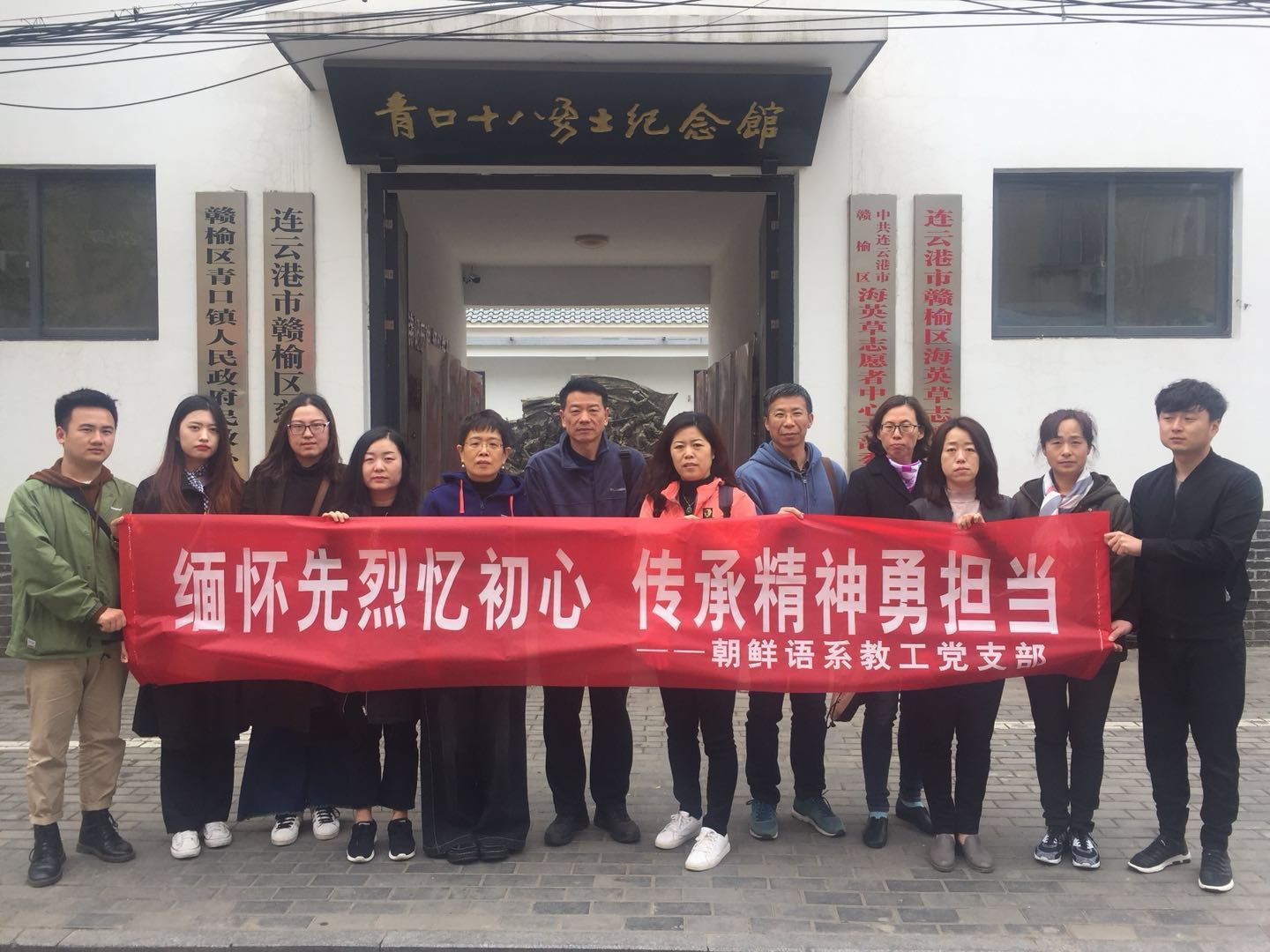今年是新中国成立70周年。70年来,我们铭记历史、缅怀先烈、传承精神、继往开来。为进一步弘扬爱国主义精神,坚定党员理想信念,朝鲜语系教工党支部于4月13日参观青口十八勇士纪念馆,开展〝缅怀先烈忆初心传承精神担当〞主题党日活动。
