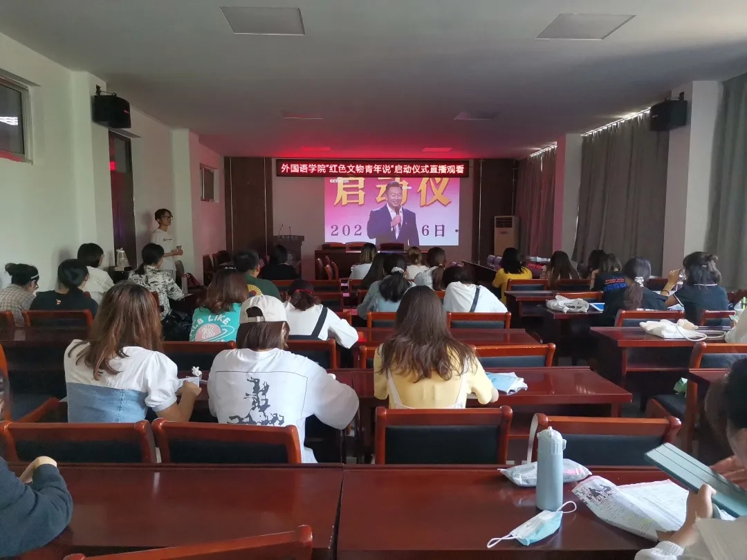 为庆祝中国共产党成立100周年,教育部高等教育司指导高校新闻传播学类教学指导委员会,会同中宣部《党建》杂志社制作了“红色文物青年说”微课,并于2021年6月6日举办启动仪式。外国语学院积极响应号召,组织师生于文渊楼269观看此次“红色文物青年说”启动仪式。