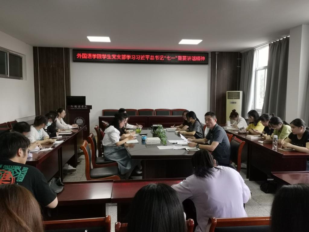 9月22日下午3时,为响应在全校各基层组织和全体党员中开展“传承伟大建党精神,践行初心使命”主题党日活动号召,外国语学院学生党支部大会在文渊楼269会议室召开支部,落实、走实党史学习教育,支部全体党员参加了会议,学生党支部书记魏学庆主持会议。