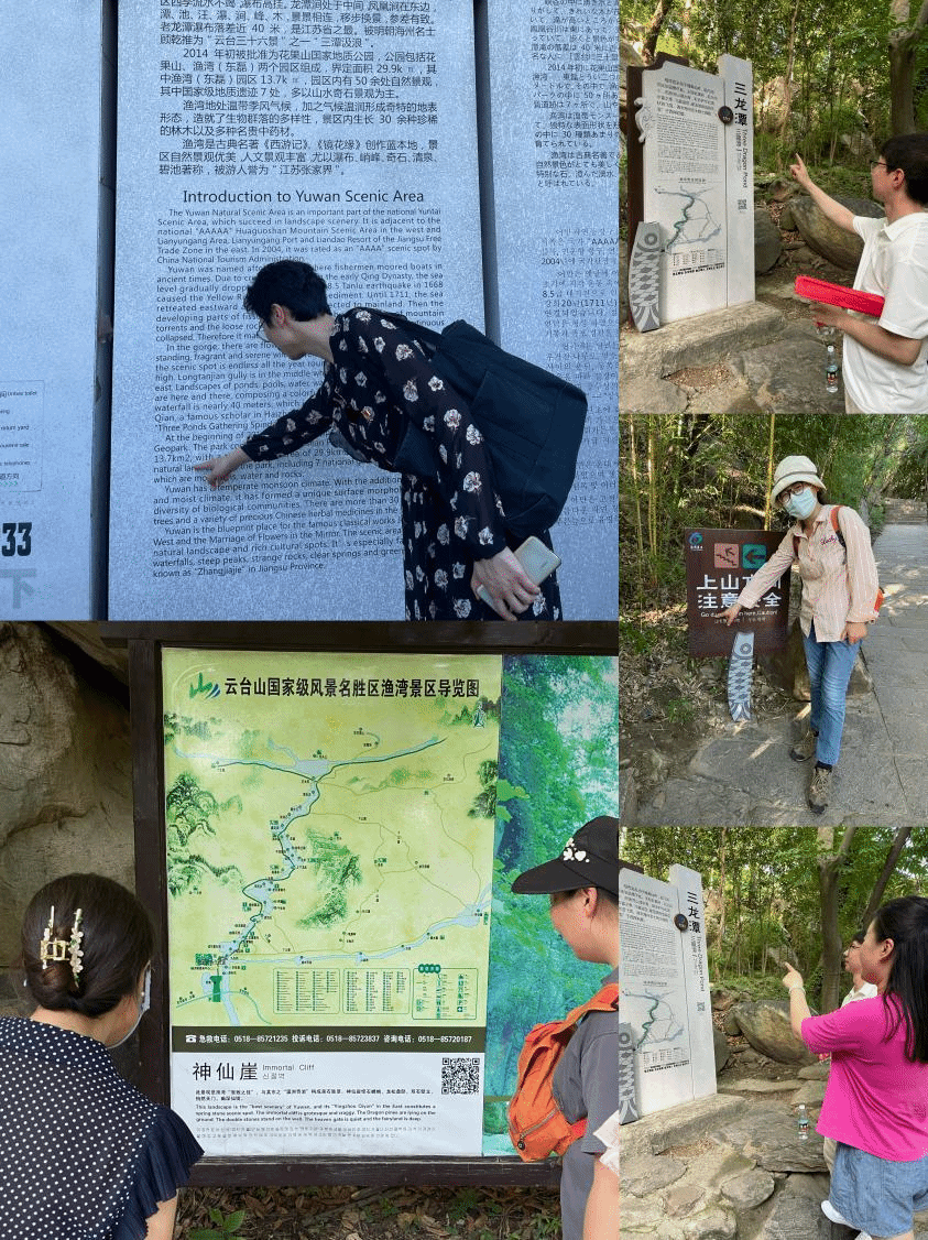 为深入开展学习贯彻习近平新时代中国特色社会主义思想主题教育,充分发挥党支部战斗堡垒作用和党员先锋模范作用,以实际行动落实主题教育“三个一线”行动要求,7月5日下午,外国语学院小语种教工党支部和大学英语第二教工党支部赴渔湾风景区联合开展“党旗飘在景点一线,争做旅游服务先锋”主题党日活动。学院党委书记田德勇和院长赵晶辉参加此次活动,两个支部的教工党员们结合自身业务知识,通过志愿服务的形式围绕景区旅游标识牌的翻译问题提出相应的意见与建议,以助力景区语言服务。
