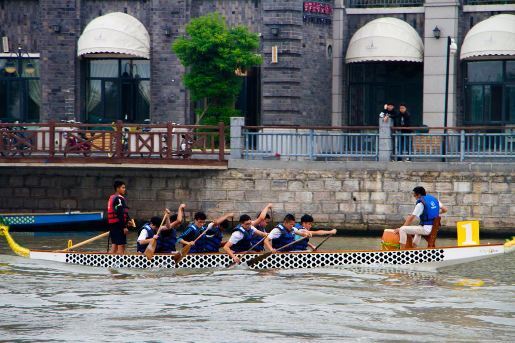 摇曳的院旗使每一个人情绪高昂,溅起的浪花体现了每一个选手的力量,队员们努力着,嘶吼着,将比赛逐渐推向了高潮。本次比赛设龙舟公开组300米直道竞速、皮划艇男子单人艇300米直道竞速、皮划艇混合双人艇300米直道竞速三个项目,全校共有14个学院246名运动员参加比赛。选手们的动作整齐有力,配合着鼓手错落有致的敲击声,船如水中飞龙一般飞速前行,每个选手都倾尽了体内的“洪荒之力”,向着终点前进。岸边的啦啦队也倾尽自己的热情,为奋力拼搏的队员们呐喊助威。队员们激烈奋战了三个多小时,我院学子虽然没有拿到名次,但是他们努力过,拼搏过,这个结果“我们很满意”,这种龙舟精神值得我院每一位学习!