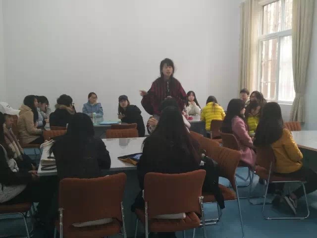 11月9日上午三四节课在活动室里进行了英语152班的综合素质拓展活动。赵冉老师将所有同学分为四组,每组六至七个人,大家围坐在一起进行了三个颇为有趣的游戏。第一个游戏,每个同学都设计一个专属于自己的动作并告诉下一个人,下一个人需要完成他人的和自己的动作并报出名字进而传递下去。第二个游戏,每个组设计自己的logo和几句话,其中要包含组员的名字。最后一个游戏,每个人用自己的一根手指与自己的同伴一起顶住一支笔,要求笔不能掉落而且其他手指不能触碰笔,并设计动作。