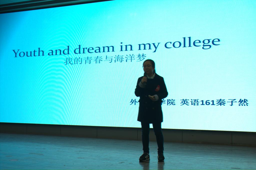 4月7日晚上七点,艺术楼报告厅座无虚席,决赛正式开始。主持人介绍完比赛规则之后,选手们轮番登场展现自己的文采,来自文学院的18号选手徐静雯的作品《云海谣》写到“云人撑桨,薪火多高,志海筑得长城万里。百载堪得翰轩墨,终得苏海学府成。铿锵有力的文笔和声情并茂的诵读引起现场观众的共鸣;来自外国语学院的16号选手丁妍用一则名为《青春筑海洋》的散文细细向大家讲述着自己对青春、求学的见解;来自化学工程学院的刘畅用一篇德语诗歌表达了自己对学校建设江苏海洋大学的祝福.......比赛现场掌声不断,观众们都被选手们精彩的演说所感染,大家都对我们学校创建江苏海洋大学充满期待,也深感作为淮工学子身上的责任感。