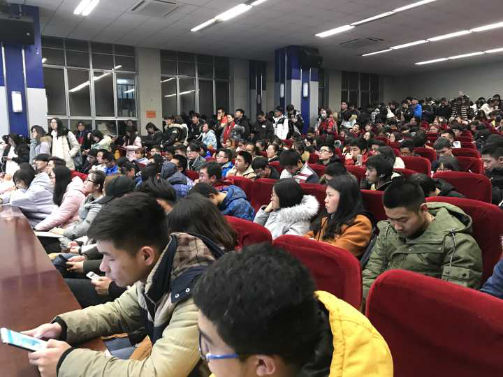 我校全体学生对本次活动热情很高,会议开始前半个小时就已经座无虚席,连旁边的走廊都占满了来听讲座的学生。会议伊始,谭飞教授首先介绍了本次讲座召开的目的,对目前我国的读研情况进行分析,并希望大家认真提前做好考研的准备,树立目标,凭借努力实现理想。