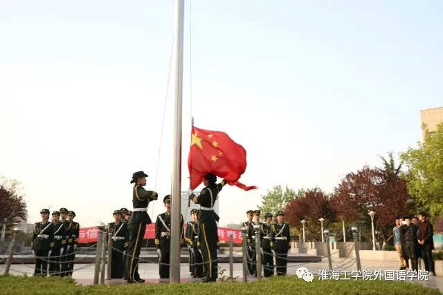 4月9日上午6时30分,外国语学院全体同学于主楼前升旗台举行了升旗仪式。外国语学院辅导员王熙和学生会主席陶逸出席本次升旗仪式。