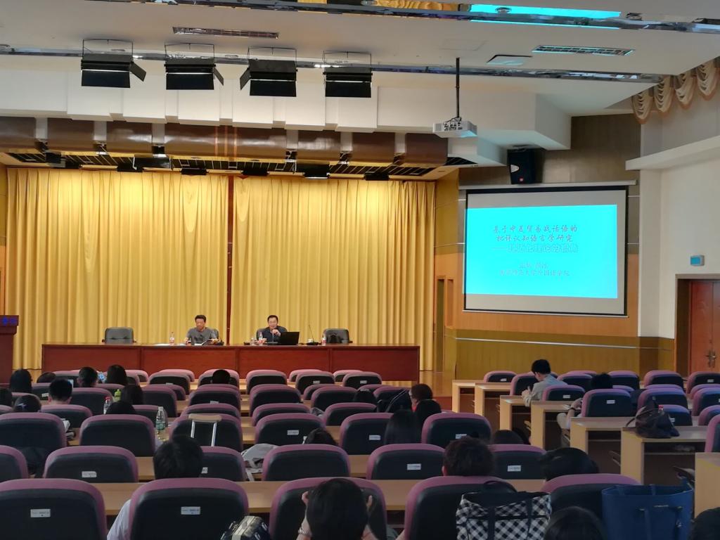 应外国语学院和学校科技处的邀请,2018年6月12日下午,南京师范大学特聘教师、博士生导师,知名认知语言学专家张辉教授在我校讲堂楼报告厅做了一场题为“基于中美贸易战话语的批评认知语言学研究——趋近化理论的视角”的学术讲座。讲座由外国语学院王聿良院长主持,我校及来自连云港师范高等专科学校外语与商务学院的100余名师生聆听了本次讲座。讲座结束后,又举办了第二期外国语学院“博士论坛”。