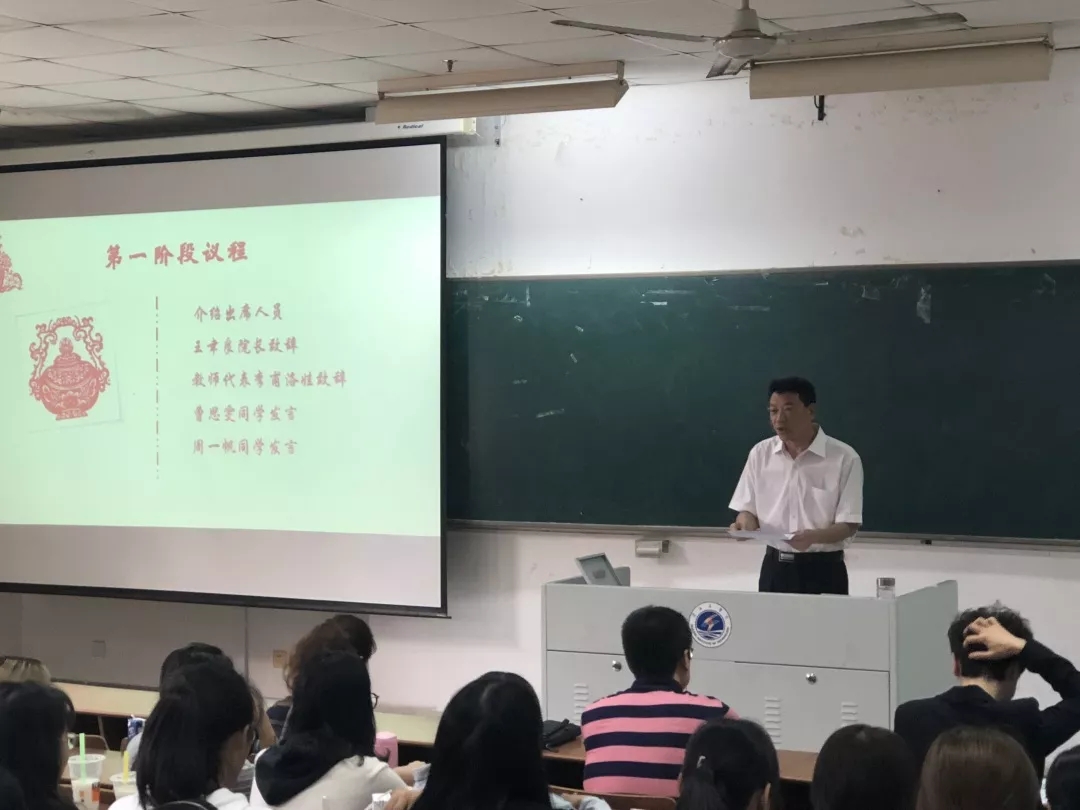 大会的第一项议程,首先由王聿良院长致辞。他介绍了连云港是一个来了还想来、好不热闹的城市,讲解了淮海工学院各个校区的特点,获得了台下同学们的阵阵掌声与欢笑。王院长指出了大一新生的一些误区并纠正,鼓励同学们学好专业,展现专业特色,享受青春的美好!他说:“大学是青春开始闪耀的时刻,好好把握,无问西东。”让人受意匪浅,了解了上大学的意义。然后,仍在读博的李甫洛娃老师告诉同学们语言的美丽,让同学们了解语言的魅力与奇妙。并且让新生们认真上好每一节课,珍惜每一个老师的课堂与心血。接着,大四学姐更是根据自己的经历,给大一新生提出了很多宝贵的建议。告诉新生们要勇于尝试、高效利用时间、争取在大学里的每一个机会,让同学们对大学生活有了一些计划和自己的目标。随后,新生代表日语181周一帆同学也说出了很多新生对新生活、新环境的憧憬,以及对今后学习的想法与目标。