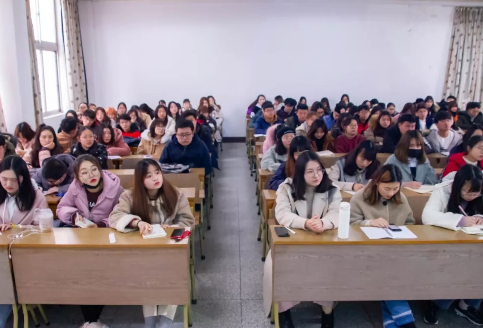 大会第一项,由各部门派代表发言总结上学期的工作并计划下学期准备做的工作。教室很安静,大家都目视前方,还有许多同学不时地用笔在本子上做笔记。