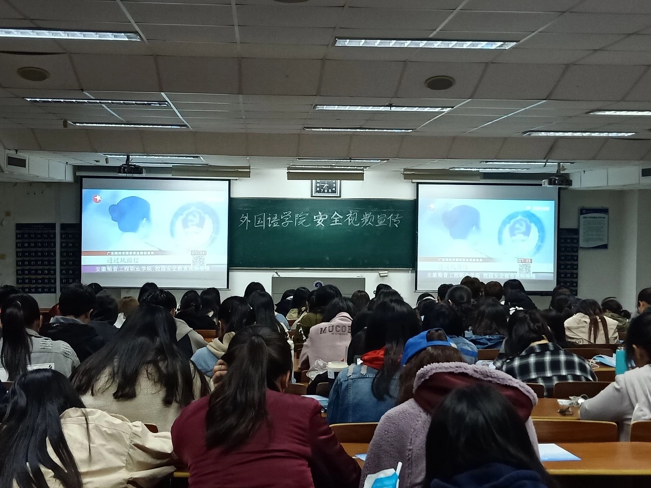 活动开始于二学历宣讲活动后,我院纪安部干事表明此次活动的目的及其意义是希望通过此次的视频观看,同学们能够注意到隐藏自己身边的安全隐患并加强安全防范意识,防止校园内发生对学生的人身造成伤害的意外事故。然后干事播放安全教育视频,视频全程25分钟,从校园诈骗,校园设施安全隐患,校园消防安全及邪教组织等方面对学生进行思想教育。中途视频因网络原因略有卡顿,但是同学们都耐心的等待并进行了观看。视频中一些令人惋惜真实事例引发了同学们的议论和反思。