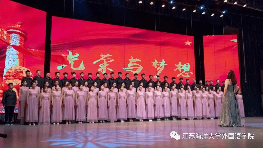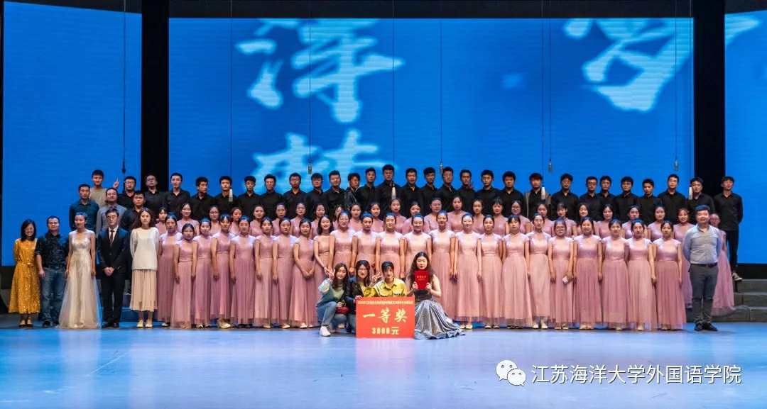 2019年10月9日星期三下午两点三十分,在苍梧校区大礼堂举办的“我和我的祖国”合唱比赛圆满落幕,外国语学院以骄人的成绩获得第一,并获得最佳指挥奖项,可喜可贺。出席领导有:江苏海洋大学党委书记王自力、江苏海洋大学副校长李梅英。评委有:江苏海洋大学党委常委、党委宣传部部长杨雪英,连云港市声乐协会副会长石阿芳,海州区音乐家协会主席、我市著名男高音歌唱家李小柱等。