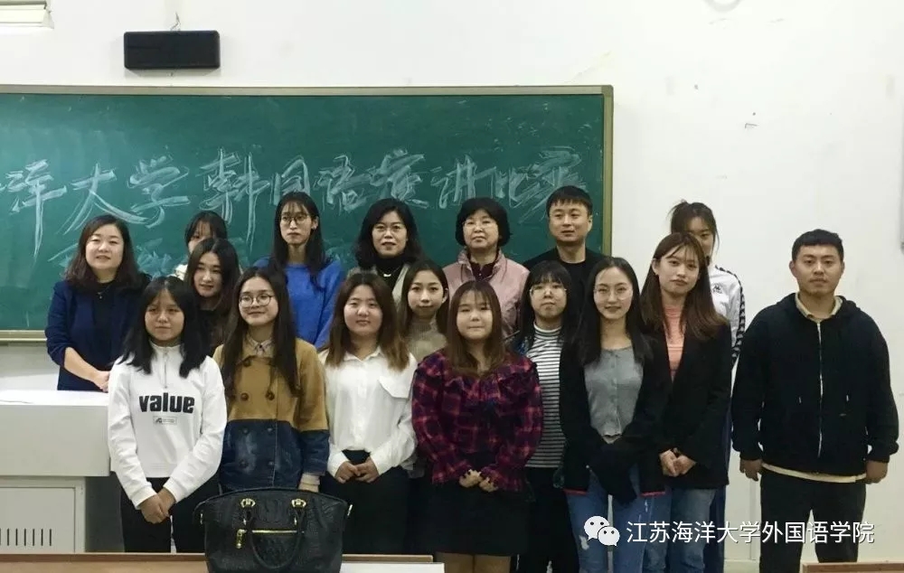 本报讯 2019年10月18日星期五下午四时江苏海洋大学韩国语演讲比赛暨歌曲比赛在苍梧校区文通楼114顺利举行并圆满落幕。朴正实、姜淼、金明华、李光勋、全美花老师出席比赛并担任评委。比赛由朝鲜语部部长王彭和陈康主持。