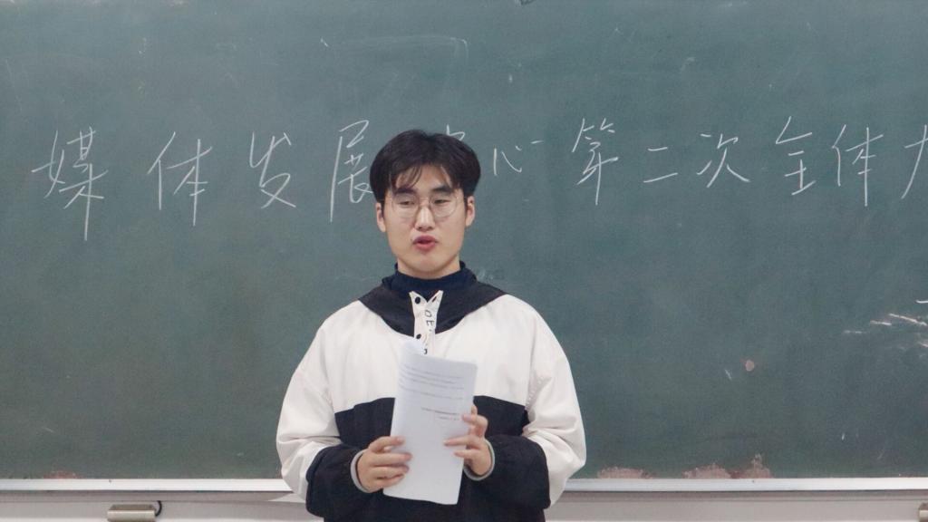 会议开始前,由秘书部干事田燕飞进行点名。接着,由新媒体中心主任孟祥玉介绍会议流程。大会第一项,各部门副部上台发言,总结近期工作安排,并对目前存在的问题提出自己的建议。