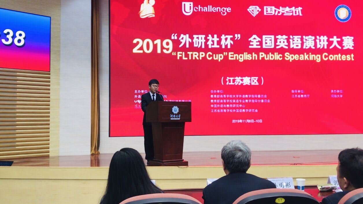 2019年“外研社杯”全国英语演讲大赛(江苏赛区)于2019年11月8日至10日在河海大学成功举办。我校理学院吴柯晨获三等奖,外国语学院殷文星获优胜奖。