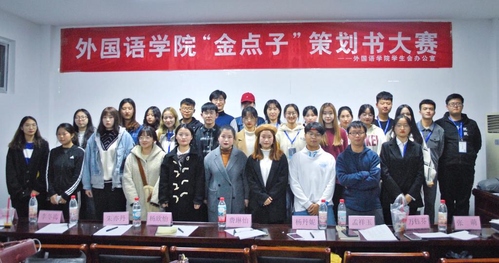 2019年11月17日星期日,由外国语学院学生会办公室主办的外国语学院“金点子”策划书大赛在苍梧校区文渊楼269顺利进行。学生团委副书记张萌;学生会主席:万钰芬,副主席:朱亦丹、李冬梅、殷文星;新媒体发展中心主任:孟祥玉,副主任:杨丹妮、费琳怡;大学生成长成才服务中心副主席杨欣怡作为评审出席本次比赛。