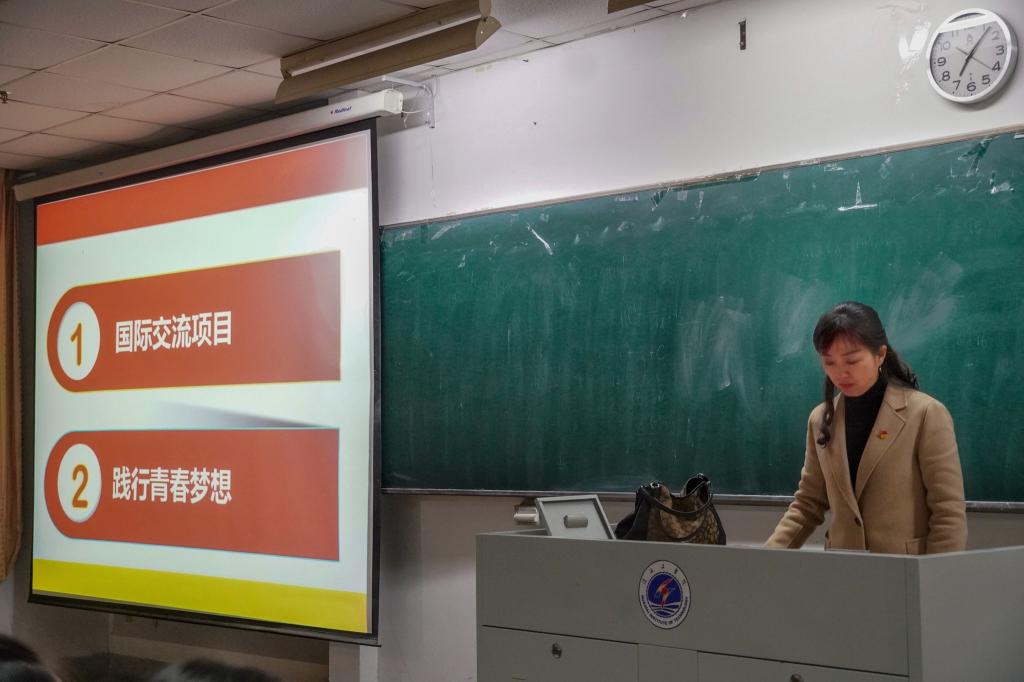 讲座分为国际交流项目与践行青春梦想两个方面进行。党委书记徐岚讲到国际交流项目分为长期项目和短期项目:长期项目包括交换生项目、2+2学位项目和3+1学年项目;短期项目包括省政府奖学金项目、日本海外修学项目、韩国海外修学项目、澳新海外修学项目和美国短期修学项目。她重点讲述了这些项目的合作院校、修学时间、课程安排、项目学分和项目费用等方面的知识。
