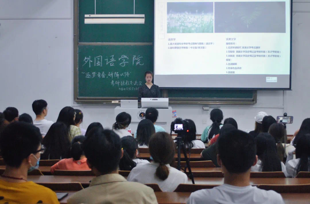 为进一步提高我院学生的考研热情,明确考研目标,掌握考研相关技巧,了解更多考研信息,6月10日晚,由外国语学院学生会学习部主办的考研经验交流会于苍梧校区文通楼225顺利开展。本次交流会诚邀优秀的考研同学来分享经验。