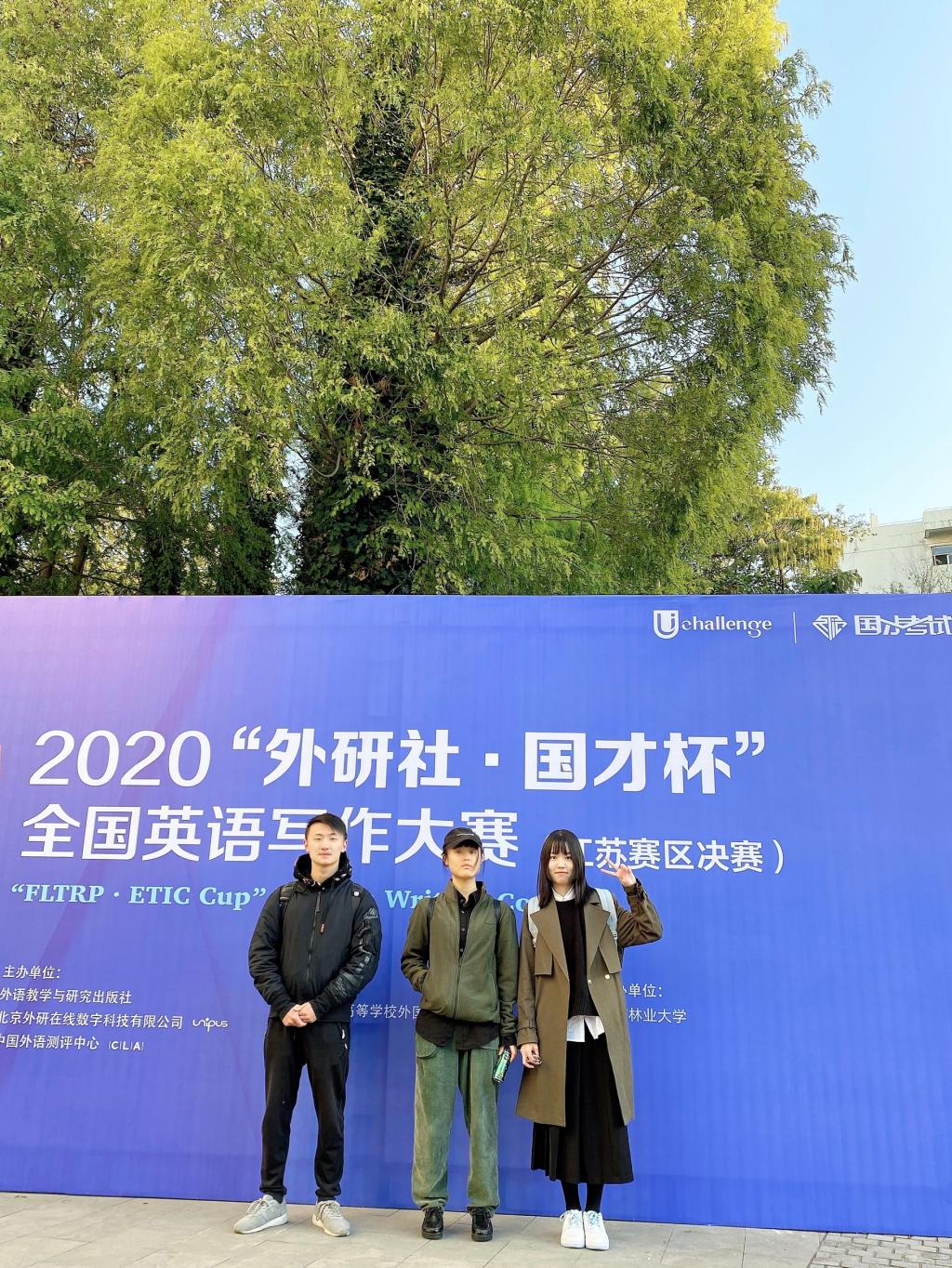 2020年“外研社·国才杯”全国英语写作大赛江苏赛区决赛于10月24日在南京林业大学隆重举行。经过激烈角逐,我校三名参赛选手脱颖而出,喜获佳绩,外国语学院英语182班成钱庄同学荣获决赛一等奖,商学院20级国商班研究生张洁钰荣获三等奖,外国语学院日语202班刘亚莉荣获优胜奖。