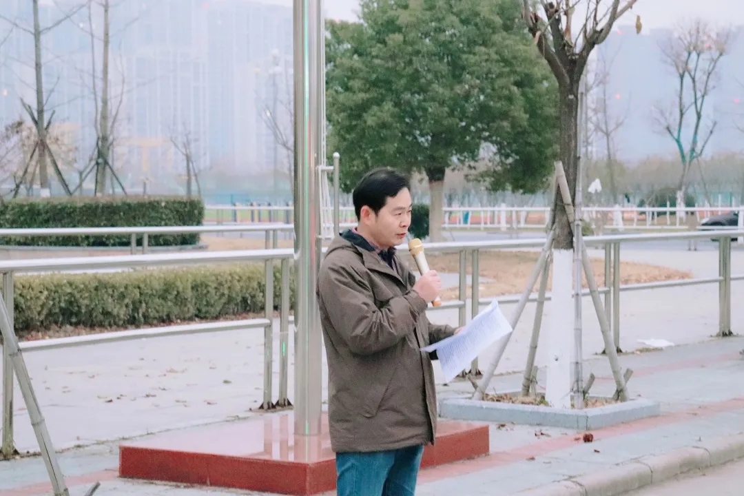 升旗仪式最后,党委副书记陆文前进行讲话。他讲道,本次升旗仪式的目的在于让大家端正学习态度,树立正确的学习目标,促进学生成长成才,从而达到构建文明校园,营造良好氛围的最终目的。学风建设是大学生存和发展的神圣使命,也是全面贯彻党的教育方针,落实的永恒主题。大学之所以存在,就在于它发挥着科学力量和道德楷模两方面作用。大学之所以为大学,就是代表着科学发展和道德文明的高度。大学作为高等学府,首先应端正学风,以实际行动投入到学校学院的优良学风建设中去,树立正确的世界观,人生观,价值观。同时,我们要学习四史文化,丰富内涵,崇尚英雄,学习英雄,为学校作出自己的贡献。我们应发挥四史文化对我们潜移默化的熏陶作用,规范言行,发扬积极进取、勤奋拼搏的精神,为实现中华民族伟大复兴的中国梦而不断奋斗。最后,他向同学们提出了几点期望:希望广大学生认真学习马克思主义理论,结合四史学习,在学思践悟中坚定理想信念,在奋发有为中践行初心使命。他鼓励大家勇敢拼搏,要有新气象,更要有新作为,要脚踏实地,不懈奋进,在更广阔的天地中书写青春华章。至此,本次升旗仪式圆满结束。