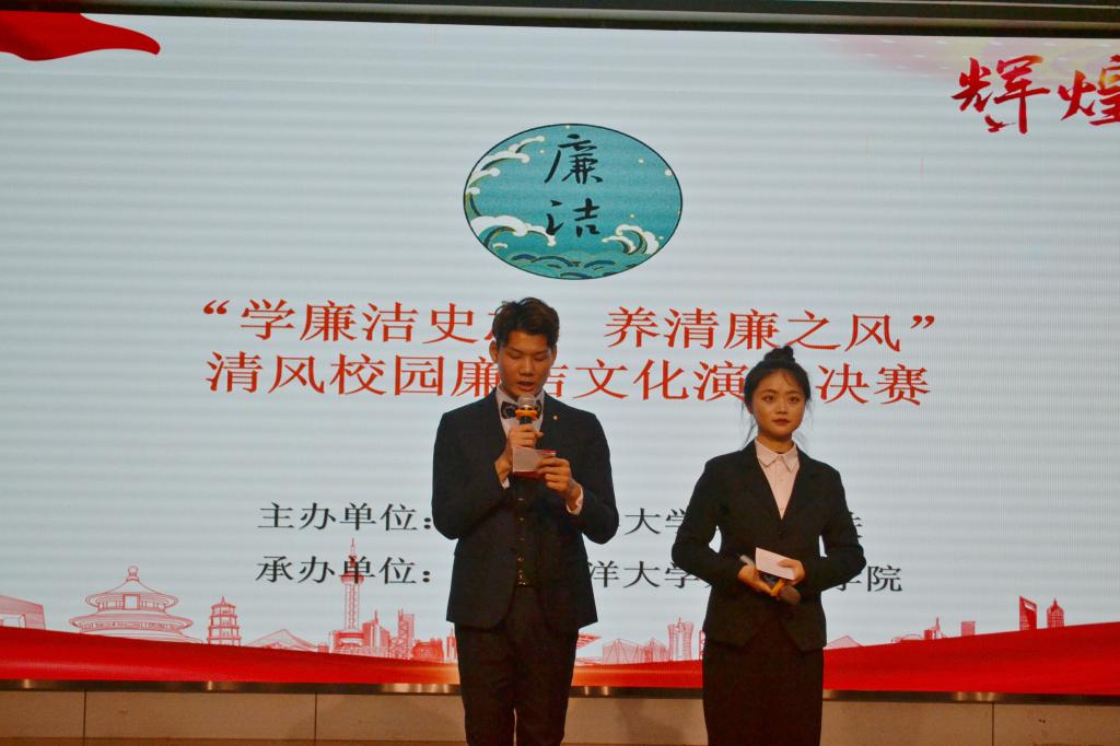 12月1日下午4时,由江苏海洋大学纪委机关主办,外国语学院承办的“学廉洁史志,养清廉之风”清风校园廉洁文化演讲朗诵比赛于艺术楼报告厅隆重举行。文法学院院长吴明忠、外国语学院党委书记王波、纪委审查调查处处长缪克平、宣传部副部长张兵、文法学院党委副书记王国银出席并担任评委。