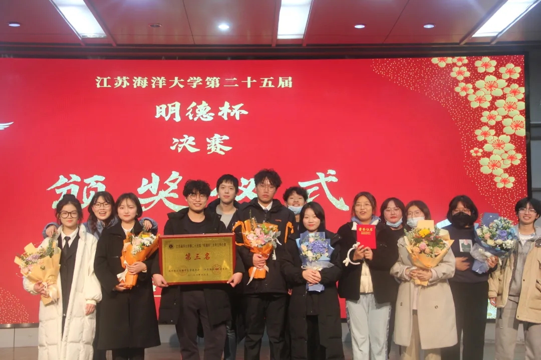 2021年12月9日晚6时,由校团委主办,校学生会承办的江苏海洋大学第二十五届“明德杯”大学生辩论赛决赛在苍梧校区艺术楼报告厅举行。外国语学院与艺术设计学院争夺本届明德杯季军之位。外国语学院为正方,艺术设计学院为反方,辩论的辩题聚焦行业与兴趣,讨论干一行爱一行还是爱一行干一行的热点话题。