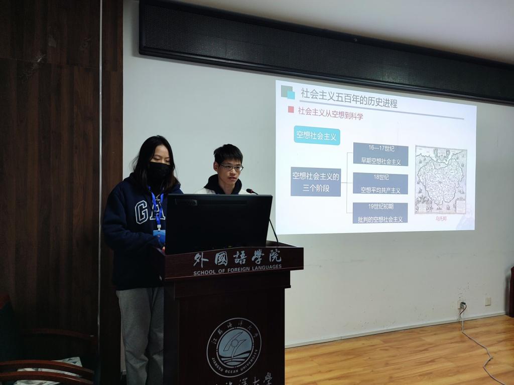 为了更好地让青马工程班的学员了解社会主义的历史,外国语学院第十四期第七次青马工程初级培训班于11月26日19时在江苏海洋大学苍梧校区文渊楼269教室举办。本次培训会由团委组织人事服务中心助理李明辉和张莲静主讲,外国语学院全体青马工程学员参加。
